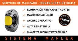 En Macisa, sabemos que la productividad y la seguridad son fundamentales para cualquier maquinaria. Por eso, ofrecemos el innovador sistema Maflex, un servicio de macizado de neumáticos que está revolucionando el sector industrial. Descubre el sistema Maflex: Macizado de nemáticos industriales con Macisa.